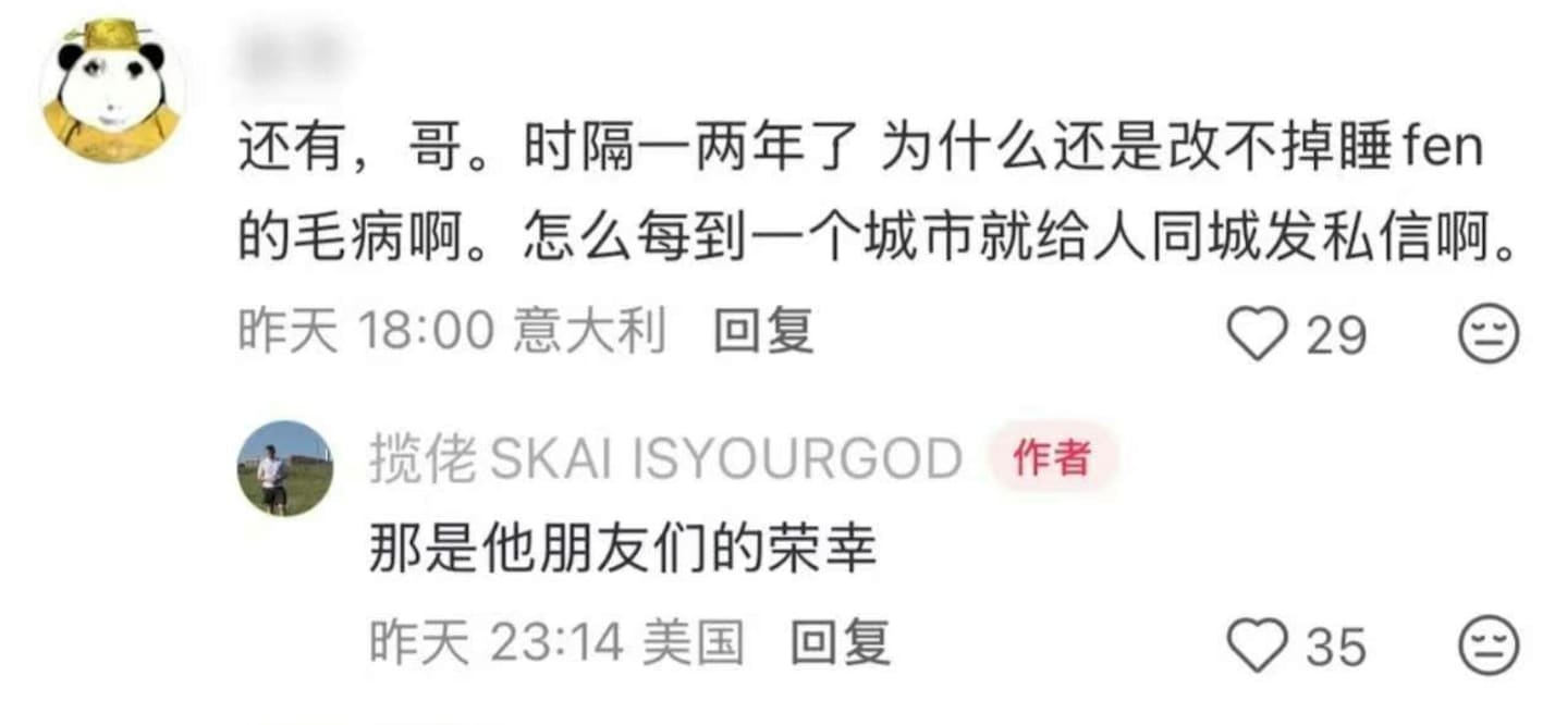 ‘Da Zhan Hong Tu’ Rapper Accused Of Sleeping With Fans; His Response Sparked More Backlash The Chinese rapper, SKAI ISYOURGOD, allegedly messages local female fans to meet up whenever he visits a city. Chinese rapper SKAI ISYOURGOD is in hot water again after his ex-girlfriend’s exposé in March last year. This time, multiple netizens and friends of alleged victims have called out the 'Da Zhan Hong Tu' Douyin star, who's also known as Lan Lao, for sleeping with fans. According to reports, the 26-year-old Spotify most-streamed Mandopop artiste would use the location feature to privately message local female fans and invite them to meet whenever he visited a city during his 2024–2025 global tour. This behaviour apparently persisted for one to two years, and “several friends have received private messages”. Some of the messages directly requested contact information — for instance, “What’s your WeChat?” — or hinted at in-person meetings. What took netizens by surprise, however, was how cocky Skai was toward these accusations. After the post went viral, a netizen directly criticised the singer in a comment: "Brother, it's been roughly two years, why haven’t you kicked the habit of sleeping with fans? Why do you DM local girls every time you visit a new city?" Skai's reply shocked everyone. “That’s an honour for their friends," he said, referring to the friends of those who went online to publicly shame him. Later, Skai took another jab on his social media: ‘I’m not obliged to educate those who haven’t fully matured." He also added that he'd "never broken the law", seemingly taking a dig at his critics. This isn't the first time Skai's getting berated for his messy relationships. Last March, his ex-girlfriend allegedly released a song and a lengthy post accusing him of repeatedly cheating and sleeping with fans during their relationship. She detailed instances of betrayal shortly before their planned marriage, prompting the singer to openly apologise and admit to cheating at that time. This time, netizens are once again slamming Skai for his misconduct. "Is he a rapper or a raper?" questioned one. Others argued that Skai fits the stereotype of rappers, saying that "sleeping with fans has become so common among rappers these days", while also criticising him for being ‘really full of himself.’" "Who on earth are the ones liking him anyway?" snapped another.